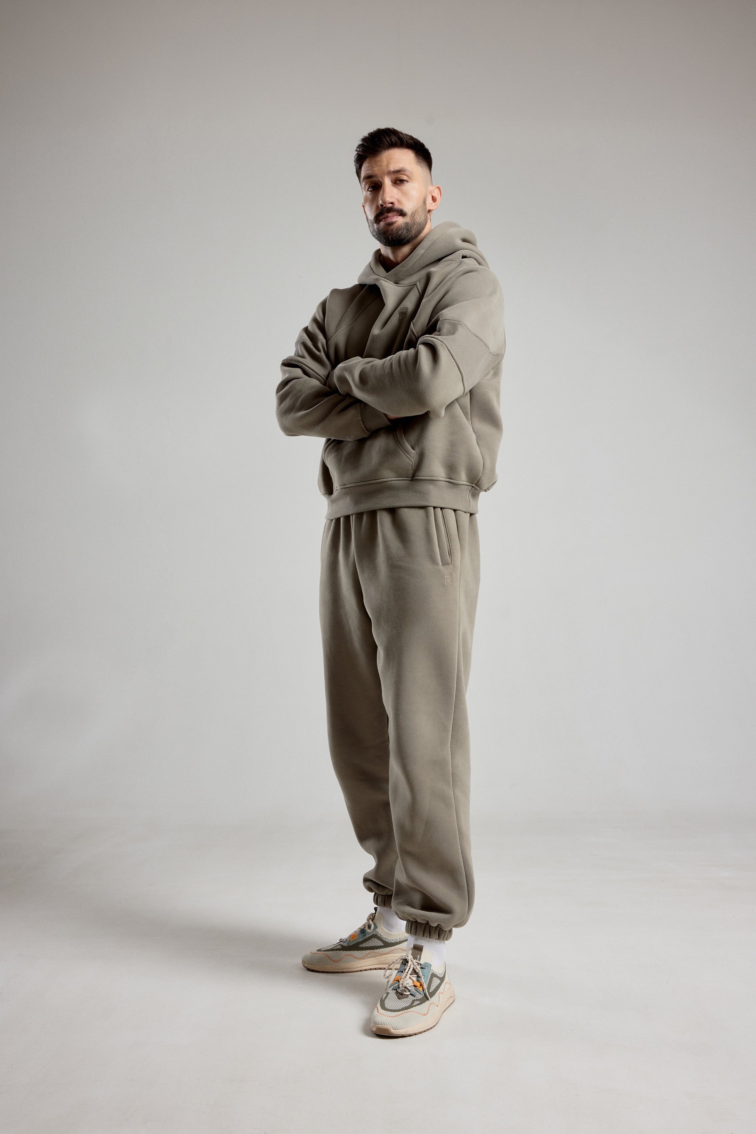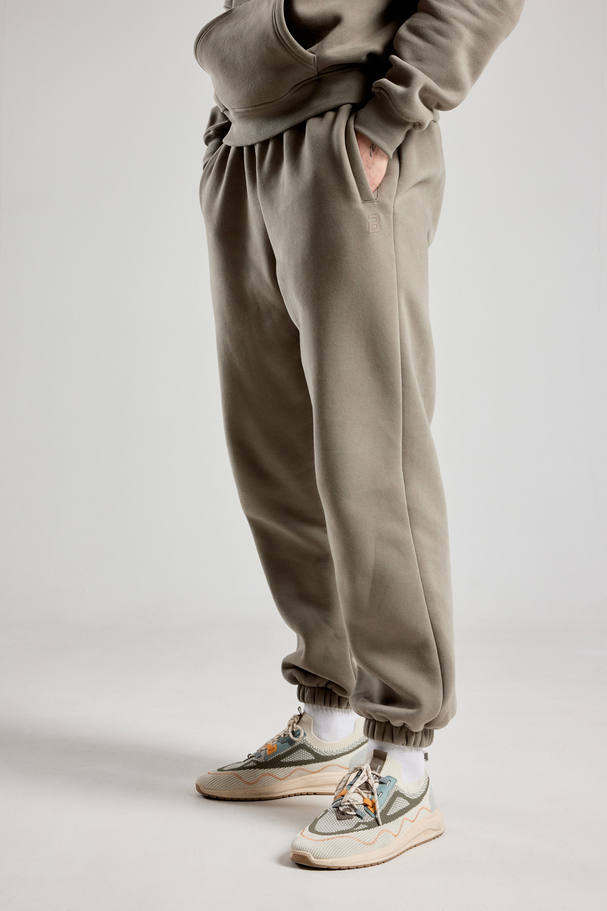 Der elastische Bund mit innenliegendem Kordelzug ermöglicht eine präzise Anpassung der Passform, während die seitlichen Schlitz-Taschen sowohl beim Training als auch im Alltag praktisch sind. Die elastischen Bündchen schaffen eine moderne, sportliche Silhouette.